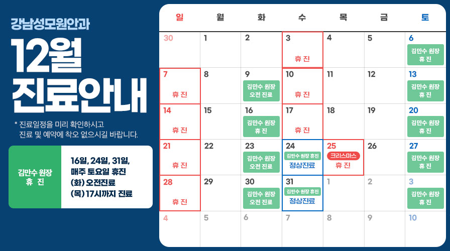 H인기글 강남성모원안과 11월 원장님 휴무일정…