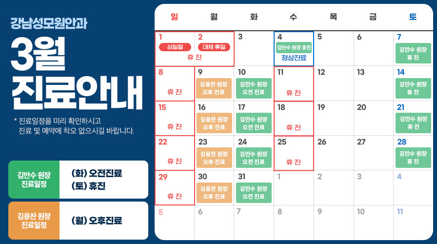 강남성모원안과 3월 원장님 휴무일정 …N새글