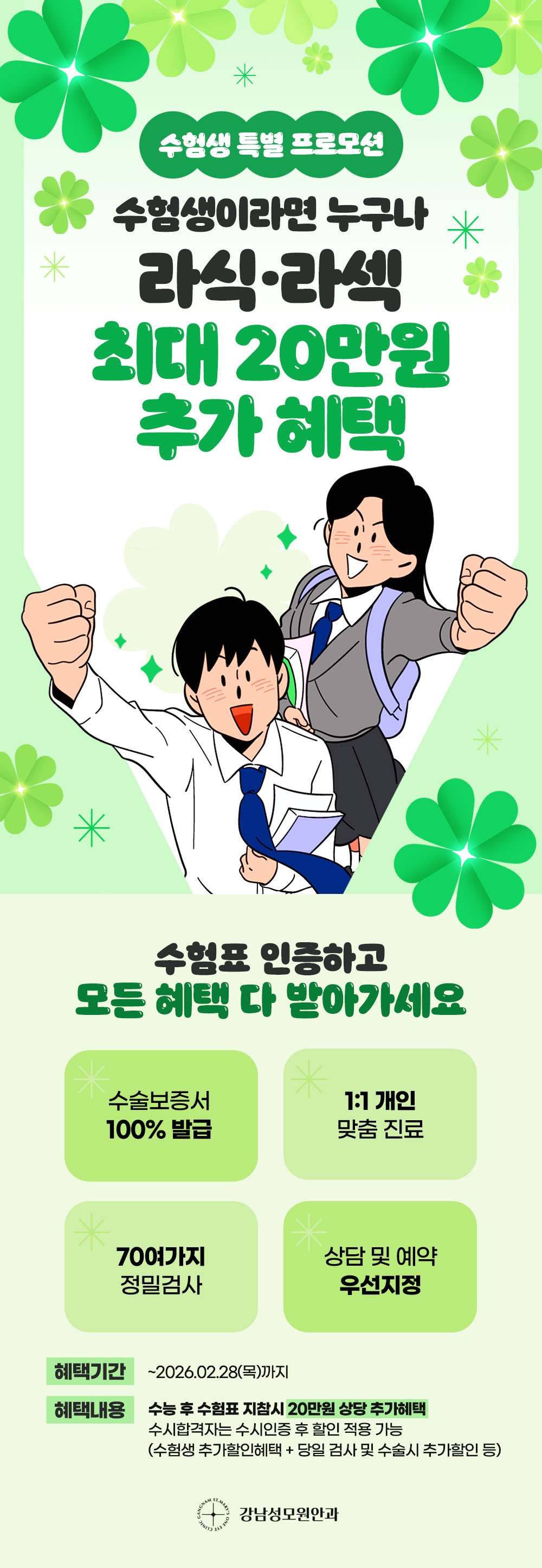• 개인정보 수집 및 이용목적 : 강남성모원안과에서 상담활용(전화, SMS)