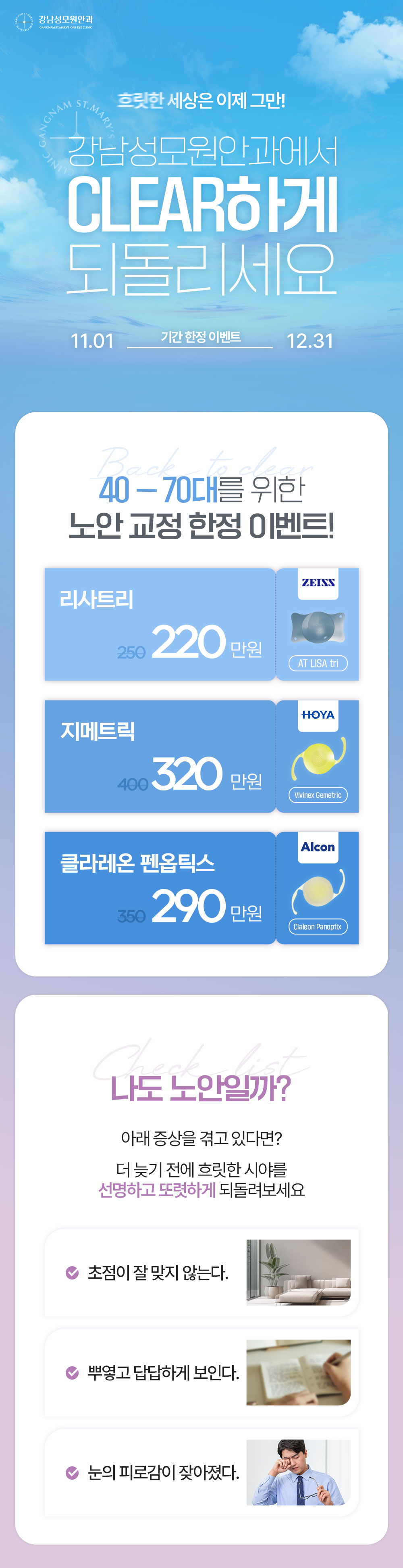 • 개인정보 수집 및 이용목적 : 강남성모원안과에서 상담활용(전화, SMS)