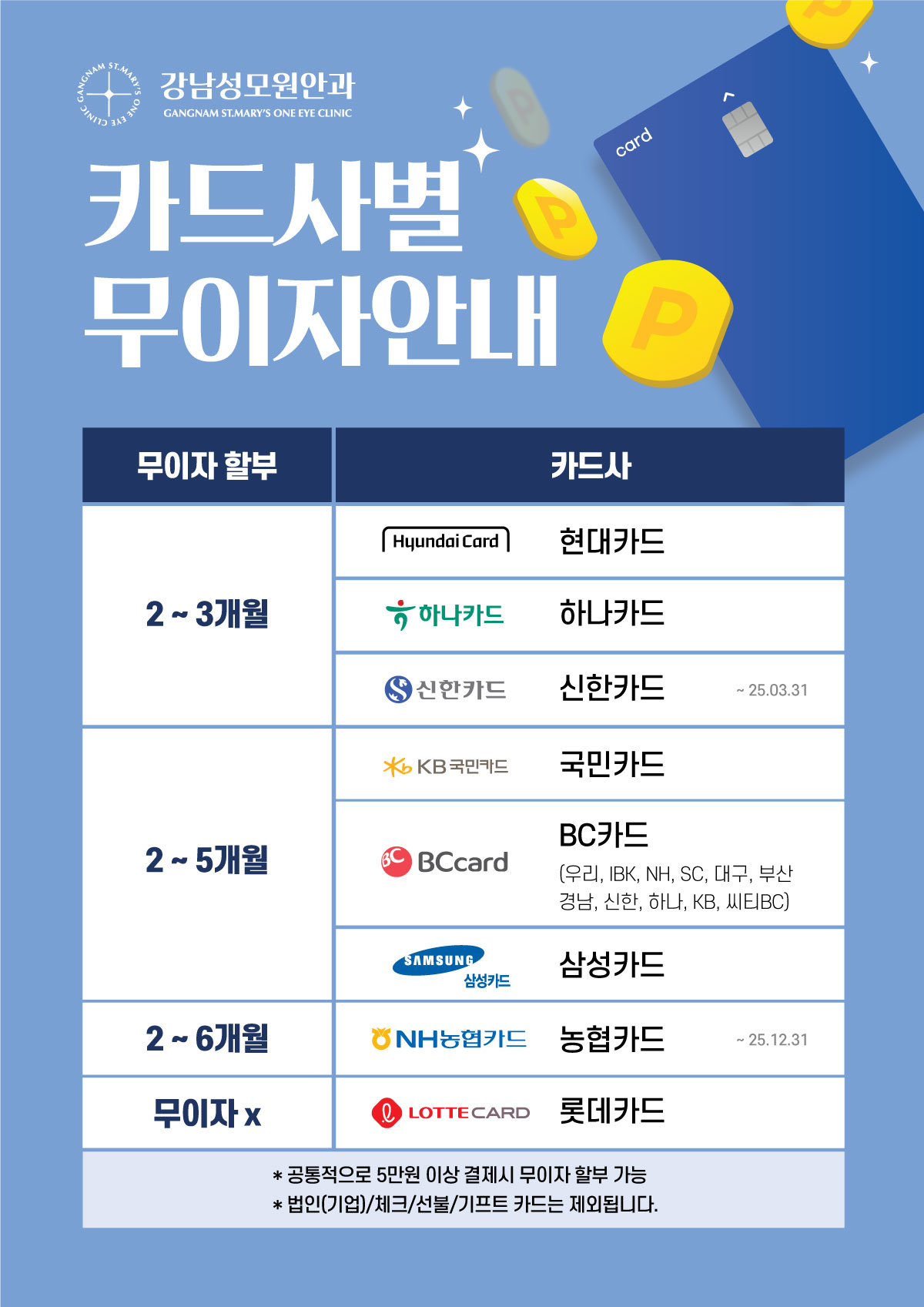 카드사별 무이자안내