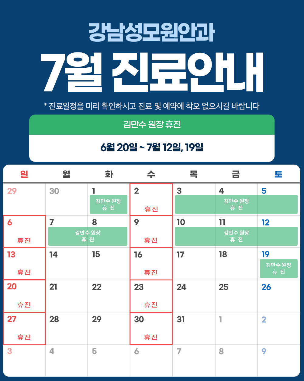 강남성모원안과 7월 원장님 휴무일정 안내 > 공지사항
