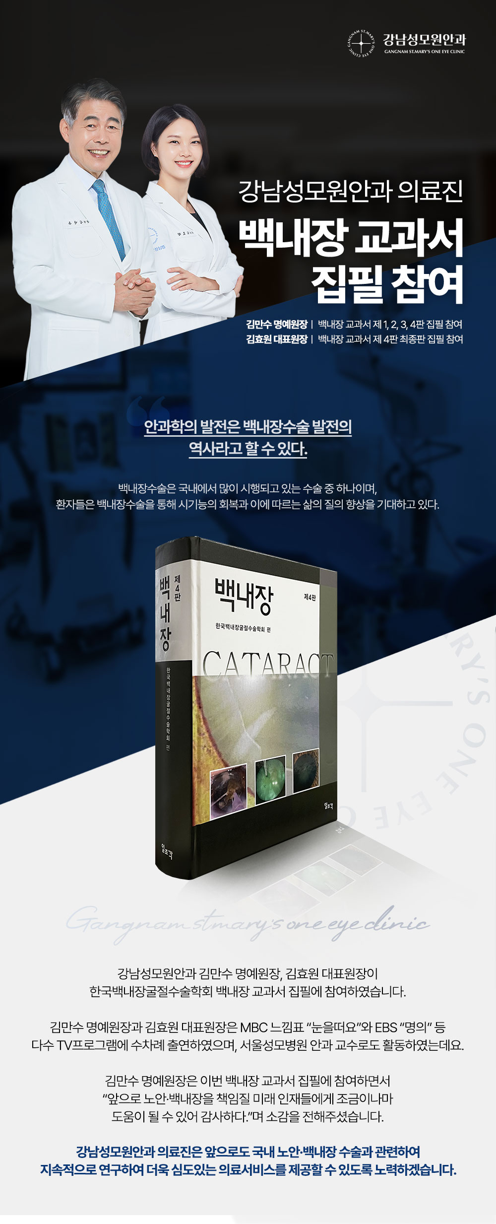 강남성모원안과 의료진, 백내장 교과서 집필 참여